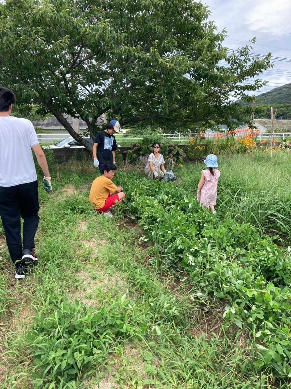 2023-07-31 12:53【しましま農園の落花生!】20230715落花生は去年種取りしていて、この春ポットに子ども達と種まきをしていました。 順調に育ち植え付けていた畝ですが、花が咲いたので、畝にかぶせていたマルチを剥がす作業をしました。 暑い日だったので、まずは室内で「落花生」の名前の由来、育ち方、マルチを張った理由などを説明。 剥がす段取りを事前に打ち合わせしてから、一気に外へ飛び出しました! 保護者同伴で未就学の子も来ていましたが、頑張っていました。 寺子屋しましまを立ち上げた理由は、コロナ禍にお弁当無償配布などの活動をしましたが、食べ物を子どもの口に放り込むだけでは、子ども達の生きていく力にはならないのでは、という想いに至ったからです。「生き抜くスキルをあげていく」。農業も居場所に取り入れた理由は、そこです。 日頃の管理やお世話も大変ですが、参加する子ども達に、少しでも土や野菜に触れて、様々な経験をしてもらうには農業が一番なのです。2023-07-31 12:53【しましま農園の落花生!】20230715落花生は去年種取りしていて、この春ポットに子ども達と種まきをしていました。 順調に育ち植え付けていた畝ですが、花が咲いたので、畝にかぶせていたマルチを剥がす作業をしました。 暑い日だったので、まずは室内で「落花生」の名前の由来、育ち方、マルチを張った理由などを説明。 剥がす段取りを事前に打ち合わせしてから、一気に外へ飛び出しました! 保護者同伴で未就学の子も来ていましたが、頑張っていました。 寺子屋しましまを立ち上げた理由は、コロナ禍にお弁当無償配布などの活動をしましたが、食べ物を子どもの口に放り込むだけでは、子ども達の生きていく力にはならないのでは、という想いに至ったからです。「生き抜くスキルをあげていく」。農業も居場所に取り入れた理由は、そこです。 日頃の管理やお世話も大変ですが、参加する子ども達に、少しでも土や野菜に触れて、様々な経験をしてもらうには農業が一番なのです。