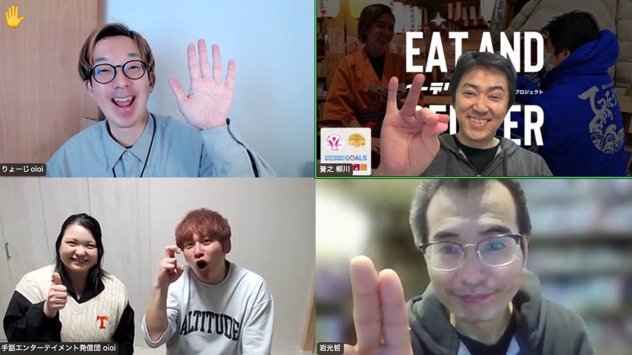 2025-02-03 21:58手話エンターテイメント発信団oioi代表と第一回打ち合わせを実施しましたネクストゴールを目指す動画内で、サイレント居酒屋または手話居酒屋を実施したいと伝えました。それを実現するために、第一回の打ち合わせをoioiの代表ノブさんとてつたろうで実施しました。 現在のところ、4月と8月に実施したいという意向で進んでいます。 皆さんが楽しめる1日をお届け出来るよう、これから何度も打ち合わせをしていきます。 ネクストゴールを目指す際の動画はこちらです https://www.youtube.com/watch?v=e5cULQHxzd8&t=405s2025-02-03 21:58手話エンターテイメント発信団oioi代表と第一回打ち合わせを実施しましたネクストゴールを目指す動画内で、サイレント居酒屋または手話居酒屋を実施したいと伝えました。それを実現するために、第一回の打ち合わせをoioiの代表ノブさんとてつたろうで実施しました。 現在のところ、4月と8月に実施したいという意向で進んでいます。 皆さんが楽しめる1日をお届け出来るよう、これから何度も打ち合わせをしていきます。 ネクストゴールを目指す際の動画はこちらです https://www.youtube.com/watch?v=e5cULQHxzd8&t=405s