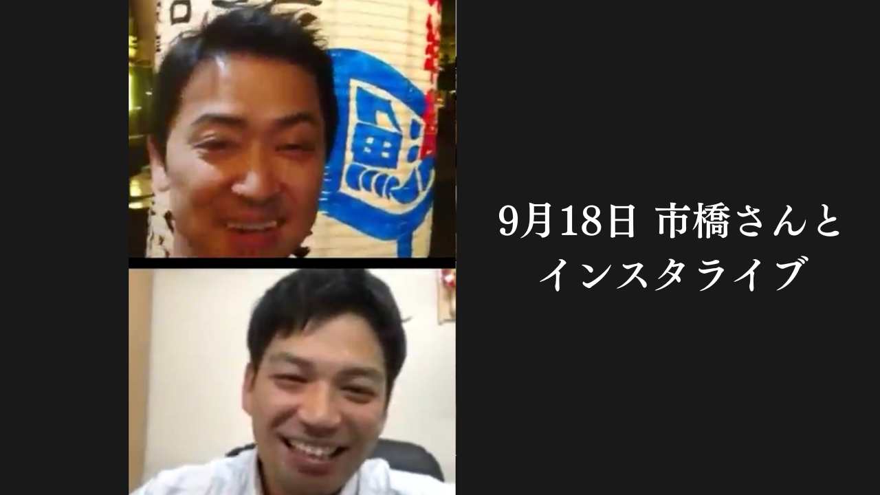 コロナ禍突入後すぐ、てつたろうが苦しいときに応援に駆けつけてくれた市橋さんと9月18日にインスタライブをしました。