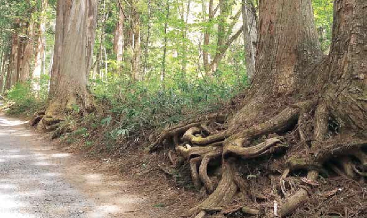 杉並木のスギ樹齢が300年を超えて老齢化し、近年頻発する災害等の影響で倒伏する危険性が高まっています。江戸期まで実施していた補植等が進んでおらず、世代交代への対応が急務です。
