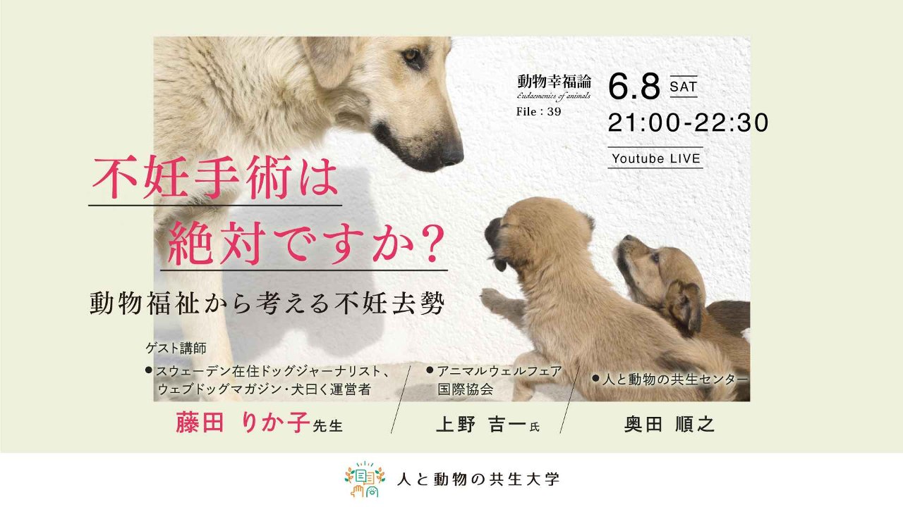 【人と動物の共生大学イベントレポート】動物幸福論「不妊手術は絶対ですか?〜動物福祉から考える不妊去勢