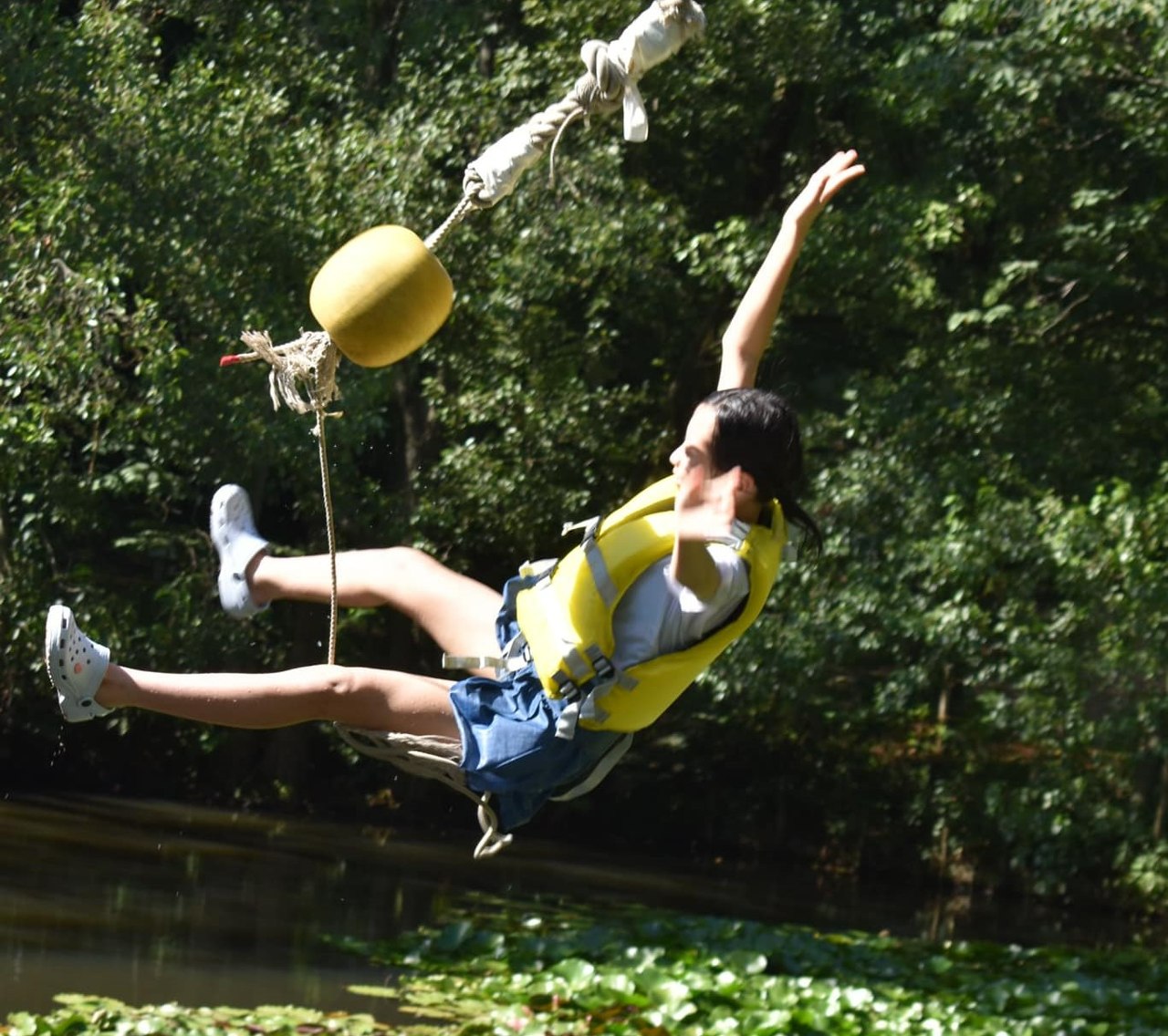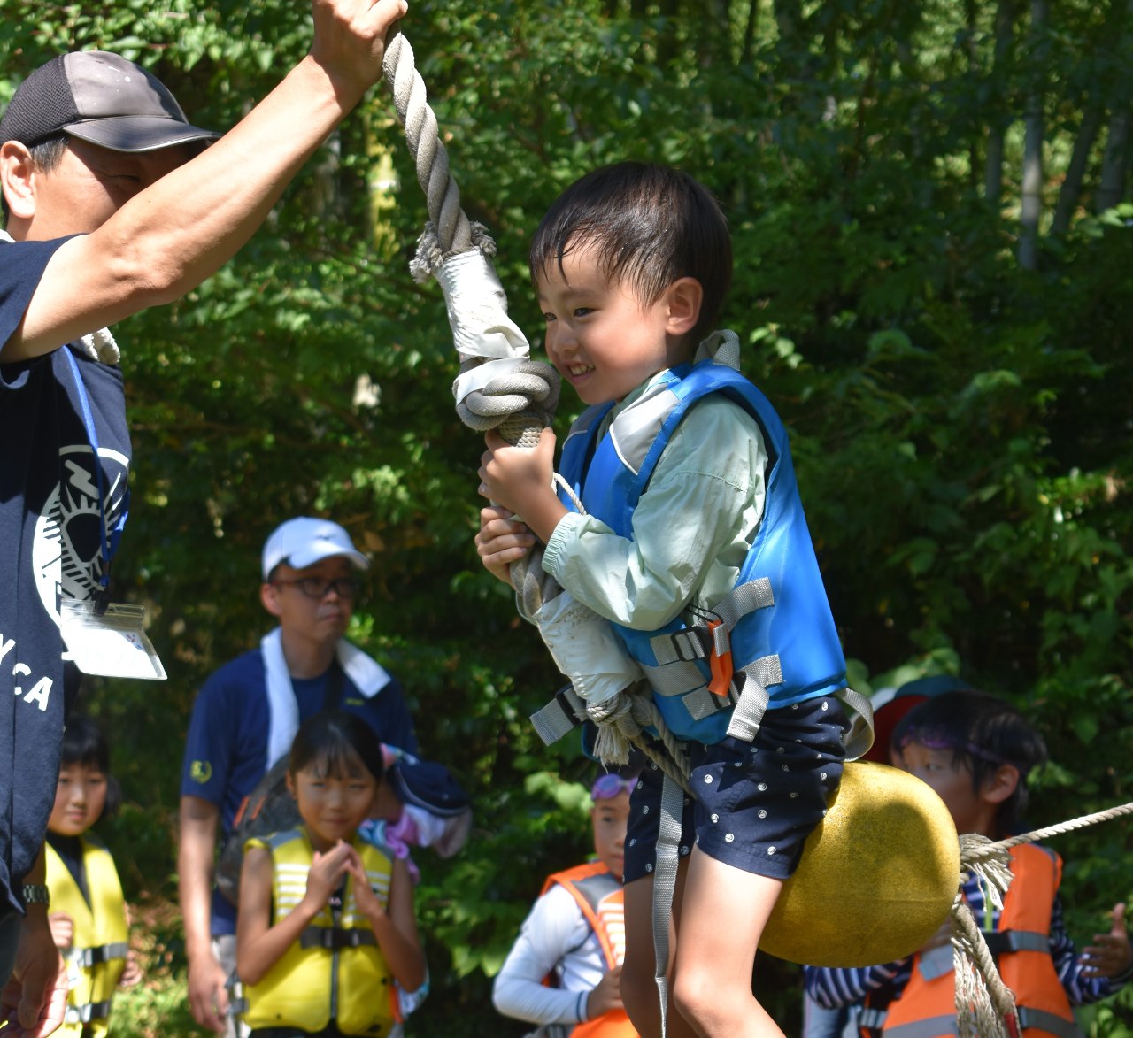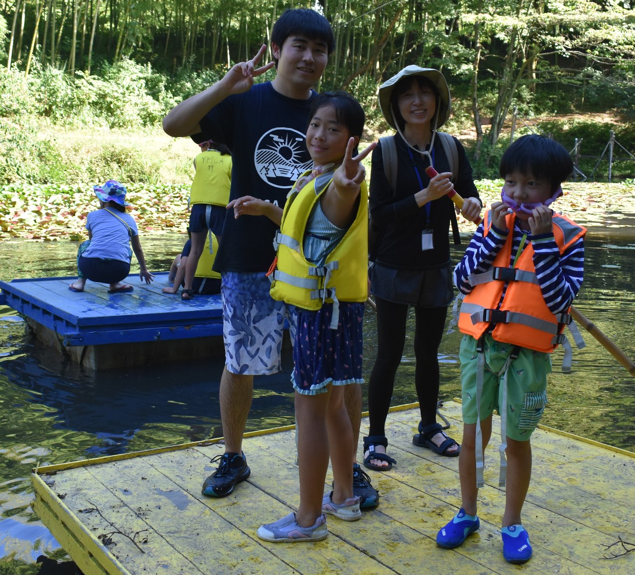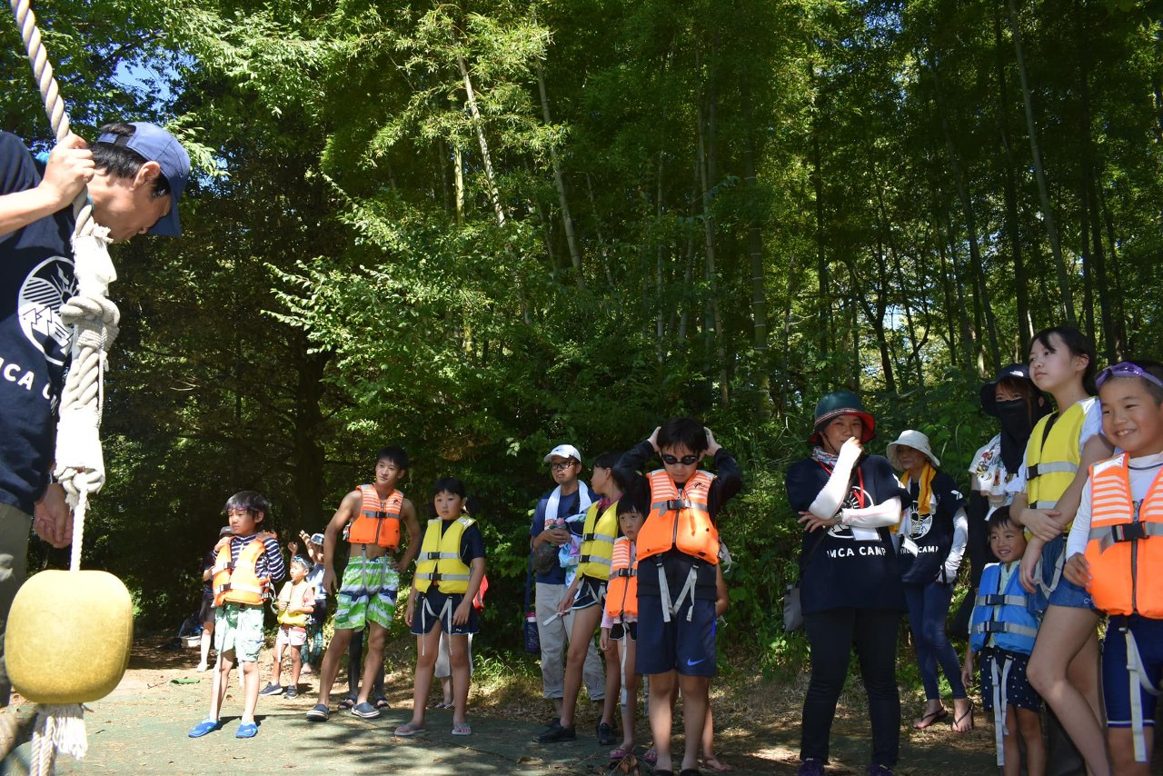 中でも「池遊び」は、ターザンロープにぶらさがりながら池にダイブしたり、いかだを必死になって漕いだり、子どもから大人まで時間を忘れてしまう程、思う存分に楽しむことができました。