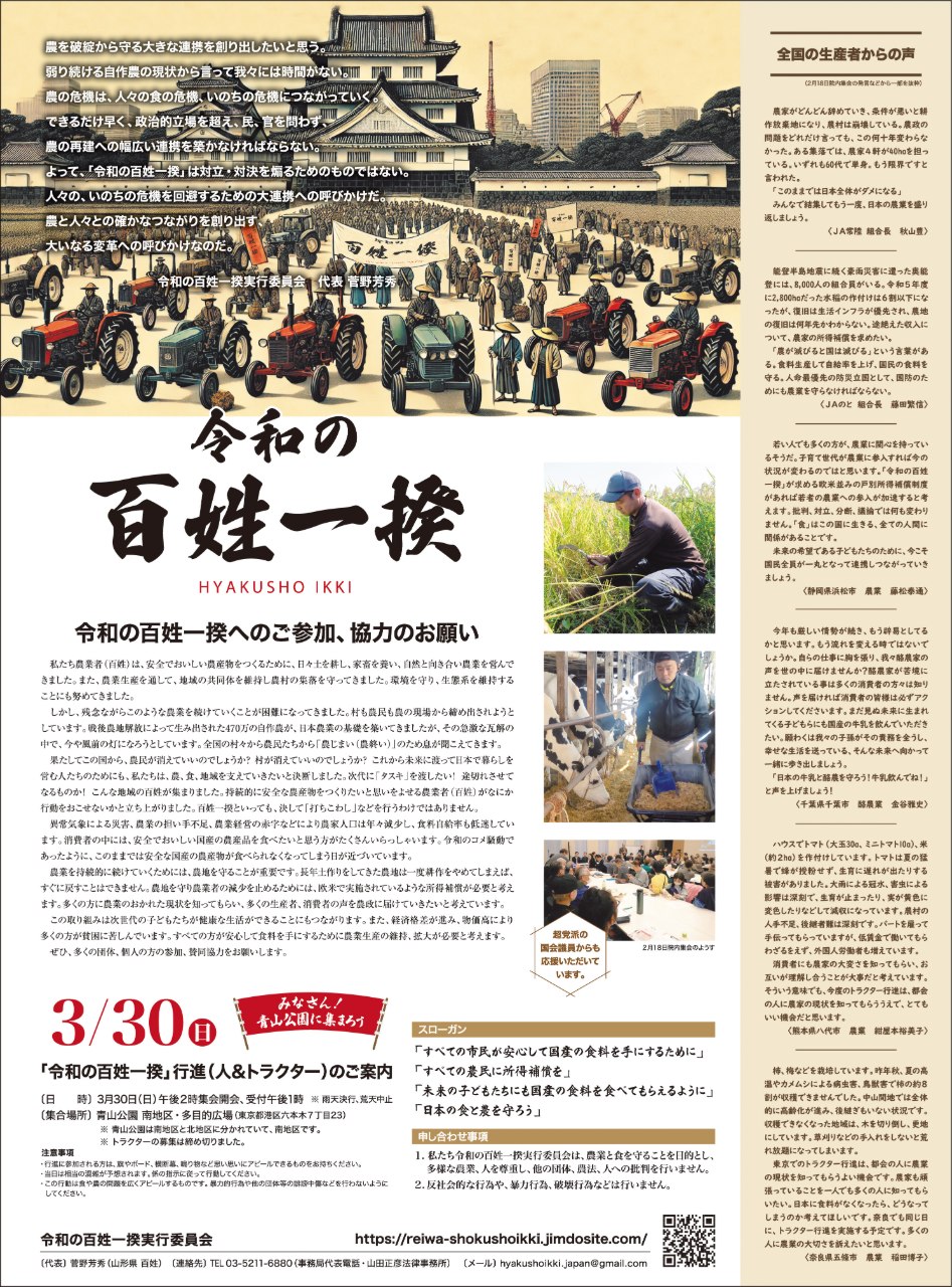 今こそ、みんなで切実な声を届けるために、「令和の百姓一揆」で立ち上がりましょう!