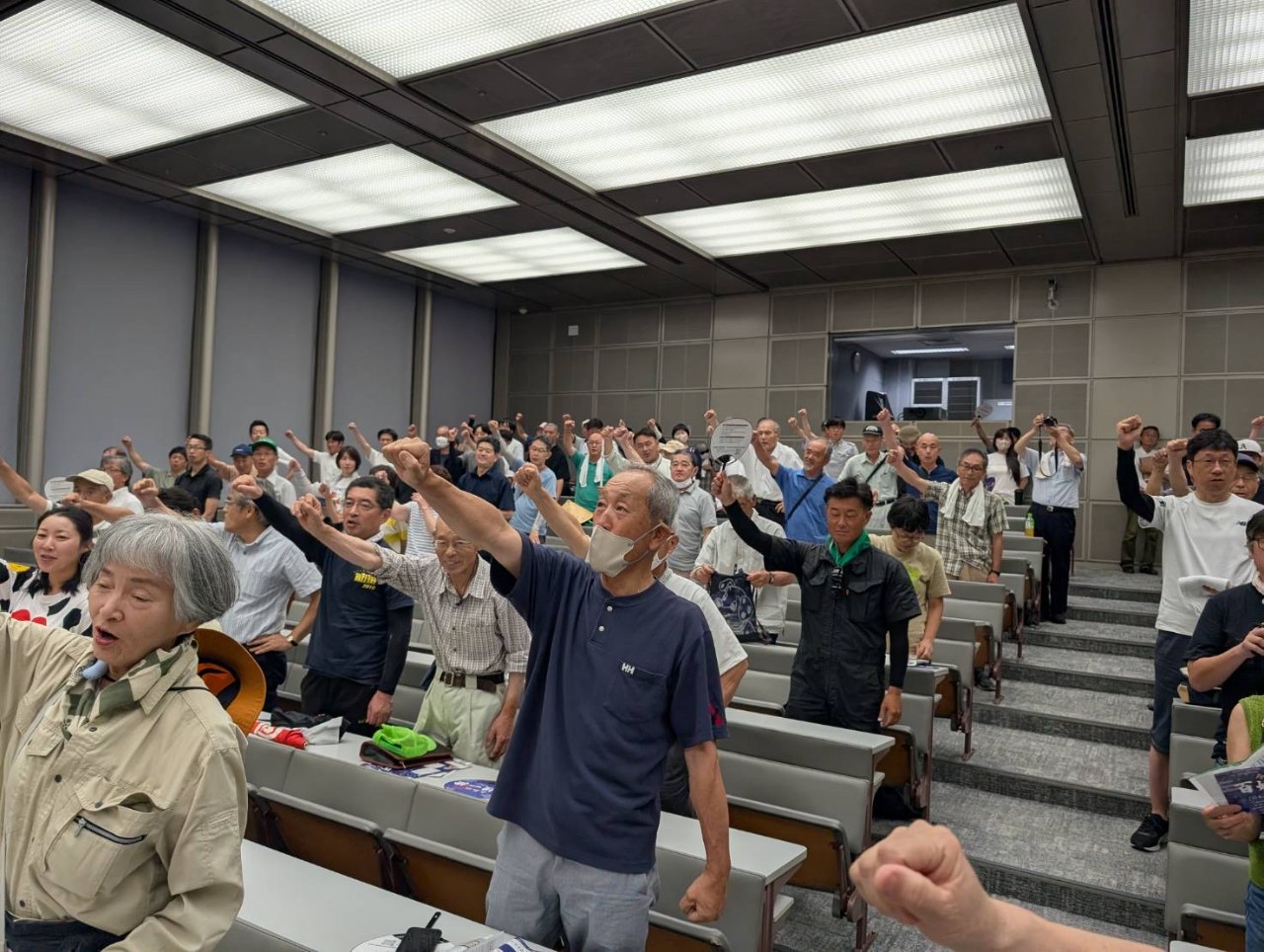 現場からの報告として、JA全農とっとりの小里司本部長、鳥取生協連の井上均理事長、 農家を代表し農業法人ワンシード代表の西根祐輔さんが実態を話し、地域の農業を守る決意を表明した。最後に、今後も力を合わせて運動することを確認し、全員で団結ガンバローを行った。