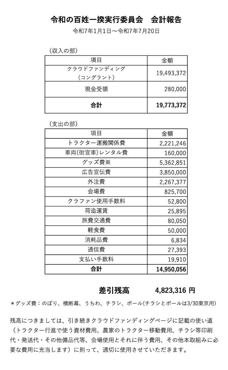 本クラウドファンディングで約2000万円に迫るご寄付と、応援や励ましの言葉をお寄せいただいたサポーターの皆様、そして参加していただいた皆様のおかげで、3月30日の令和の百姓一揆を皮切りに全国各地でこの取り組みを広げることができました。