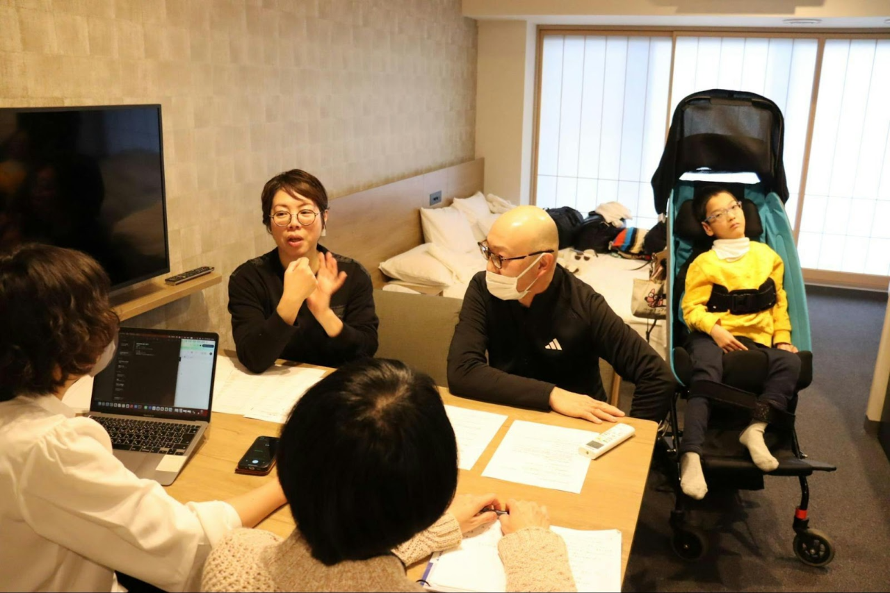 試泊の1シーンより。ご家族の困りごとやニーズを宿の方と一緒に伺っています。