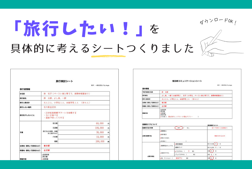 具体的には、医療的ケア児とそのご家族、受け入れ体制を整えたい宿に試泊の協力をいただき、事前確認が負担なくやり取りできるように「コミュニケーションシート」をつくりました。