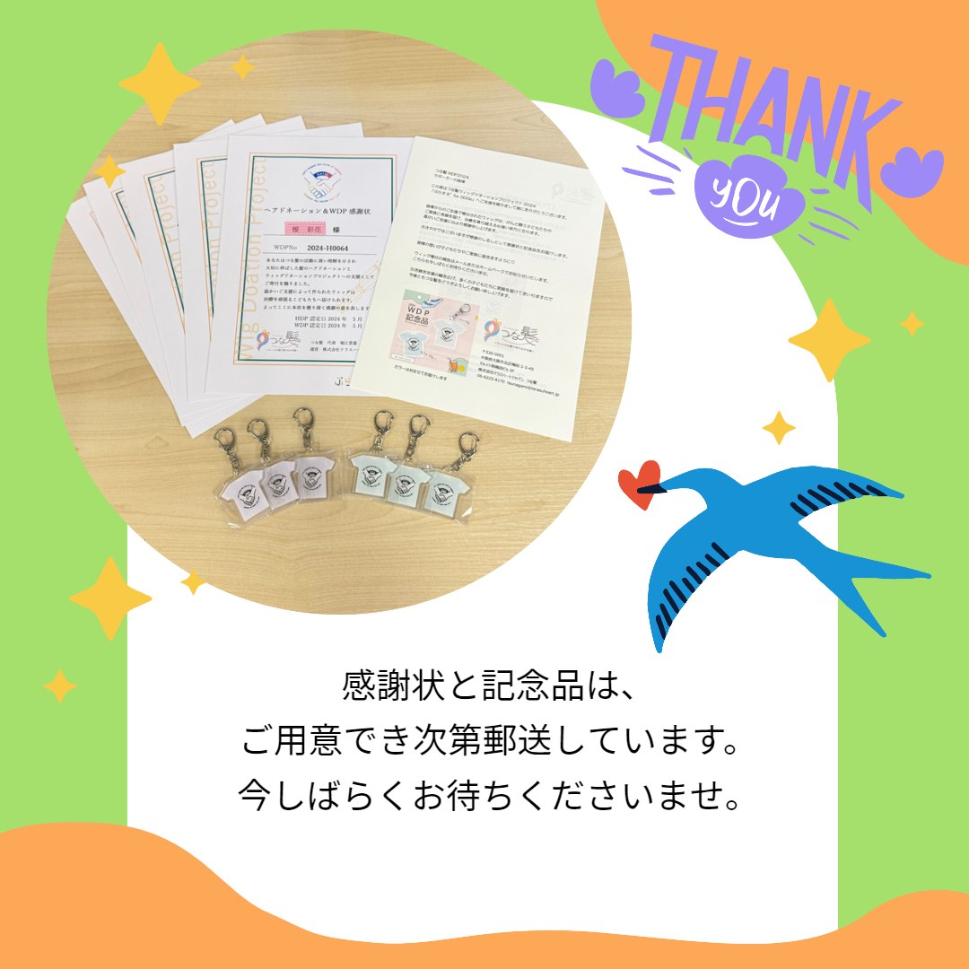 ウィッグの寄付が完了しましたらサポーター様へご報告いたします。
