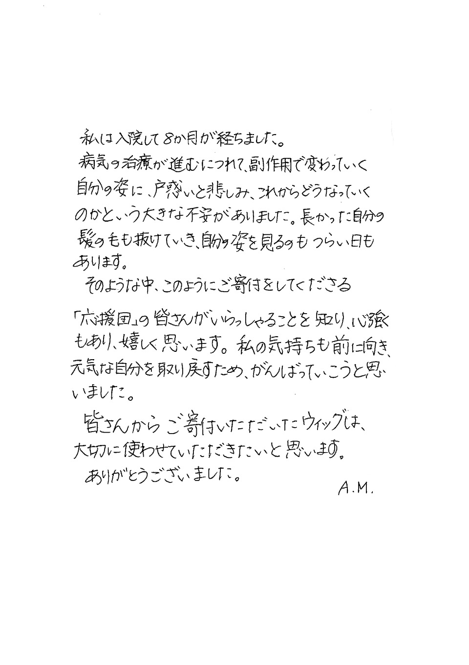 ウィッグを受け取られた方からのお手紙