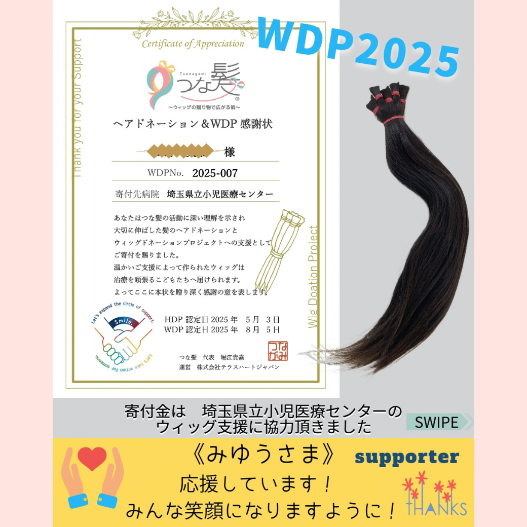 皆さまの温かい応援とご支援が、ウィッグを必要としている子どもたちの笑顔へとつながっていきます。心より御礼申し上げます。本当にありがとうございます。