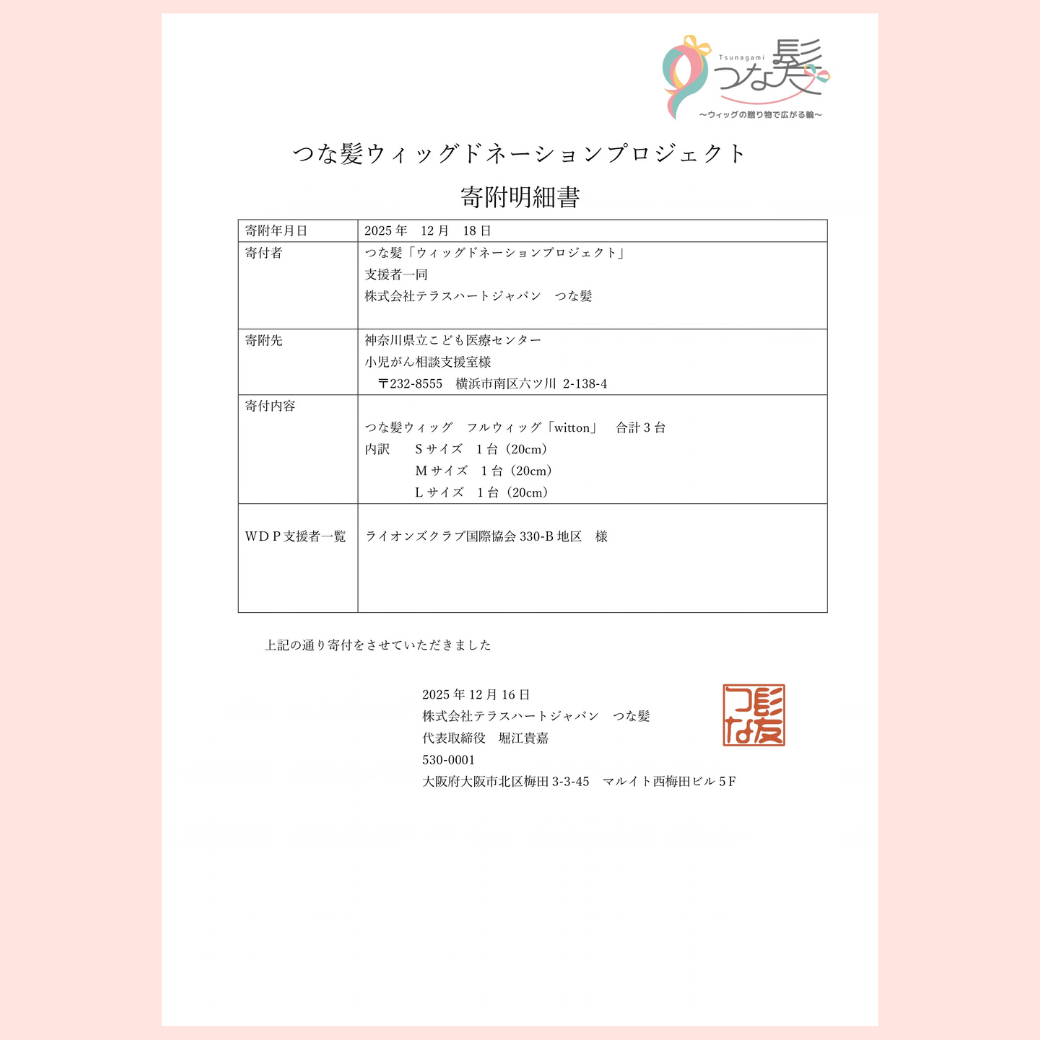 今後も皆様の温かい想いを大切にしながら、一人でも多くのお子さまへウィッグを届けられるよう努めてまいります。本当にありがとうございます。