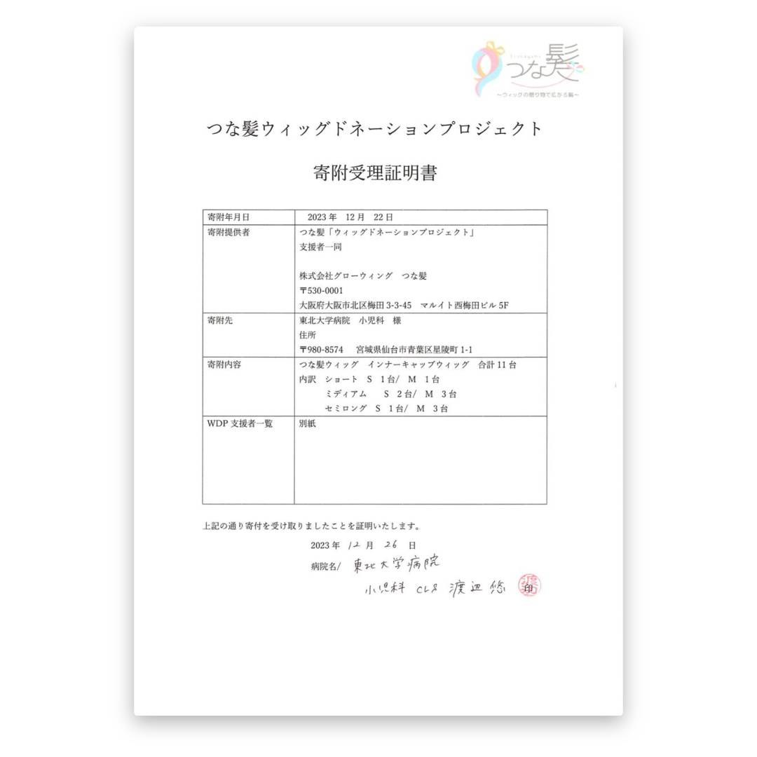2023年12月21日 東北大学病院へウィッグを発送しました。