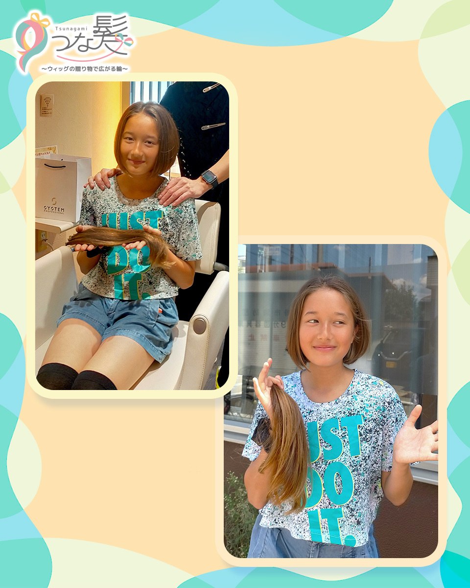 この度は素敵な取り組みに参加させていただき、ありがとうございました。私自身、子どもに携わる仕事をしていることもあり、子どもたちの笑顔は、何より尊いと感じています。ヘアドネーションを通して、少しでもお手伝いできたのであれば嬉しいです。ウィッグを受け取った子どもたちが、より楽しく笑顔で過ごせることを願っています。 - 北村 美生 様 どうかウィックで心身共に元気になってくださいね!心から応援しています!