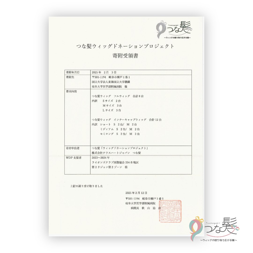 ウィッグ寄附受領書:岐阜大学医学部附属病院