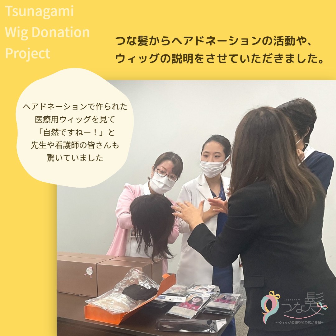 ウィッグを届けに岐阜市民病院をご訪問された際、小児がんの子どもたちと日々過ごしている医療従事者の方よりお話を伺い、ウィッグ支援の必要性をとても感じられたとのこと。