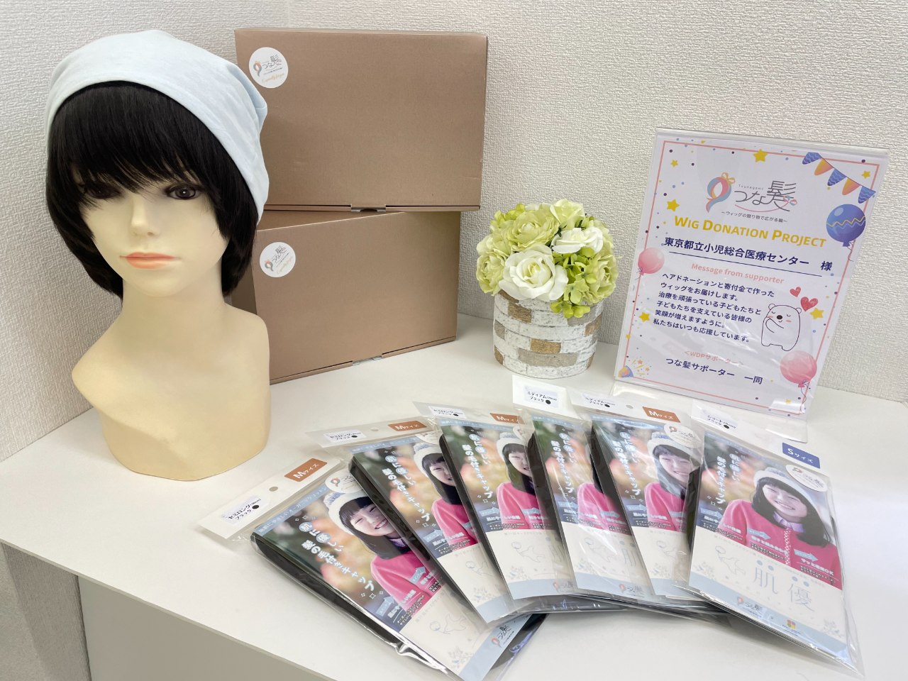 現在つな髪では寄付金とヘアドネーションの髪で医療用ウィッグを作成し、全国の小児がん・こども病院へウィッグを直接寄付する活動『ウィグドネーションプロジェクト』に取り組んでいます。