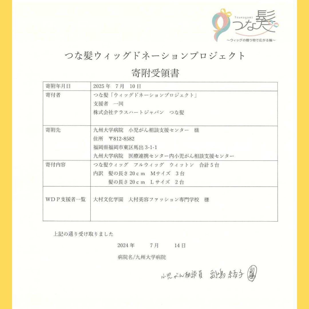 ウィッグ寄附受領書:九州大学病院