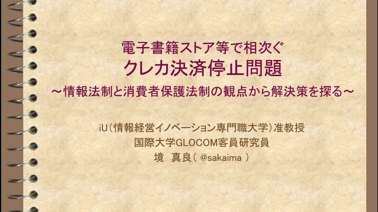 演題:電子書籍ストア等で相次ぐクレカ決済停止問題