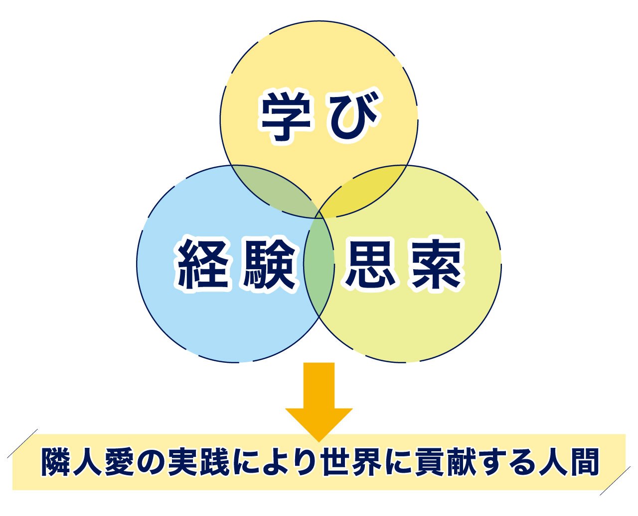 本校は、英語・国際教養教育や理数教育の「学び」、学校行事、部活動などによる「経験」および心の教育を通じての「思索」により、「隣人愛の実践により世界に貢献する人間」を育てることを教育の目標としています。生徒たちが、急速に進む科学技術を良い方向に用いながら、戦争や格差、気候変動、人口減少など様々な課題に取り組んでいく人間に育っていけるよう、皆様のご支援をお願い申し上げます。