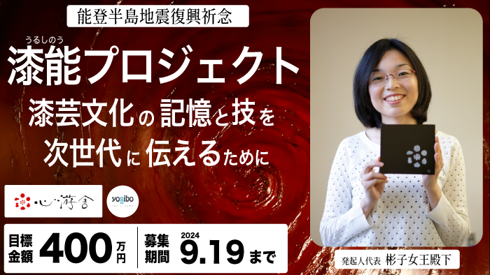 彬子女王殿下(能登半島復興祈念『漆能』実行委員会発起人代表)よりファーストゴール達成の御礼とご報告