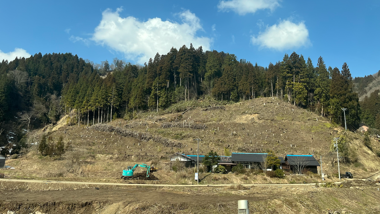 前回訪れた時(2024年10月)と比べて、壊れかけていた家屋は少しずつ撤去され、更地になっている場所が増えていました。建物の解体が進んでいることは復興の第一歩といえますが、その一方で、町の風景が大きく変わり、かつての面影がさらに薄れている印象を受けました。