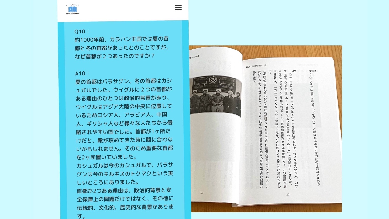 ウイグル人文科学研究院のメンバーは、毎月1回の勉強会でムフタル先生から学んだことを、Q&Aという形にまとめて、ホームページや機関誌第一号に掲載しています。