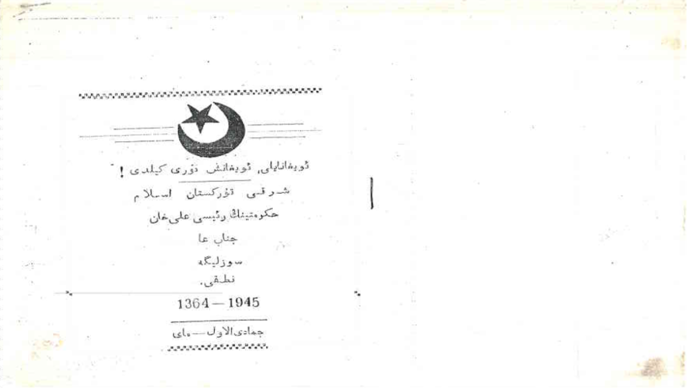 機関誌には1945年5月,グルジャでのアリハーン・トラ初代大統領の演説が掲載されます。(ウイグル語と日本語で掲載します)