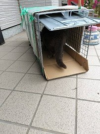 捕獲の際は、猫ちゃんが安心できるように...足場には段ボール、周囲も段ボールで目隠し♪