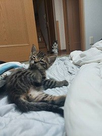 保護後、一度体調を崩して下痢もありましたが、お薬を頑張って飲んで、今はすっかり元気に♪