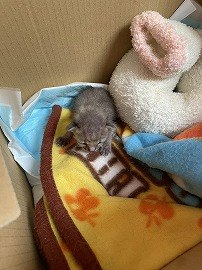 その方のご自宅の隣にある空き家に、カラスが集まり騒いでいて、「何かあるのでは...?」と不安に思い見に行ったところ、古びた絨毯のような布の隙間に小さな命が...!!