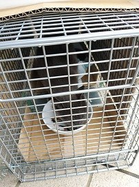 まずは捕獲機に慣れてもらうため、中でご飯を食べてもらいタイミングを見計らって実施しました!