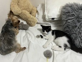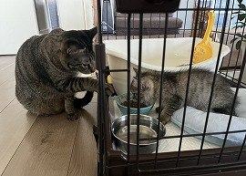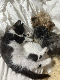 お家での様子を送っていただいたところ、先住猫さんにあたたかく見守られながら、なつきくんも安心して過ごしているようです♡