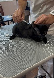 大きな声で嫌がる子や暴れてしまう子もおりましたが、全ての猫たちが無事に接種を終えることができました。
