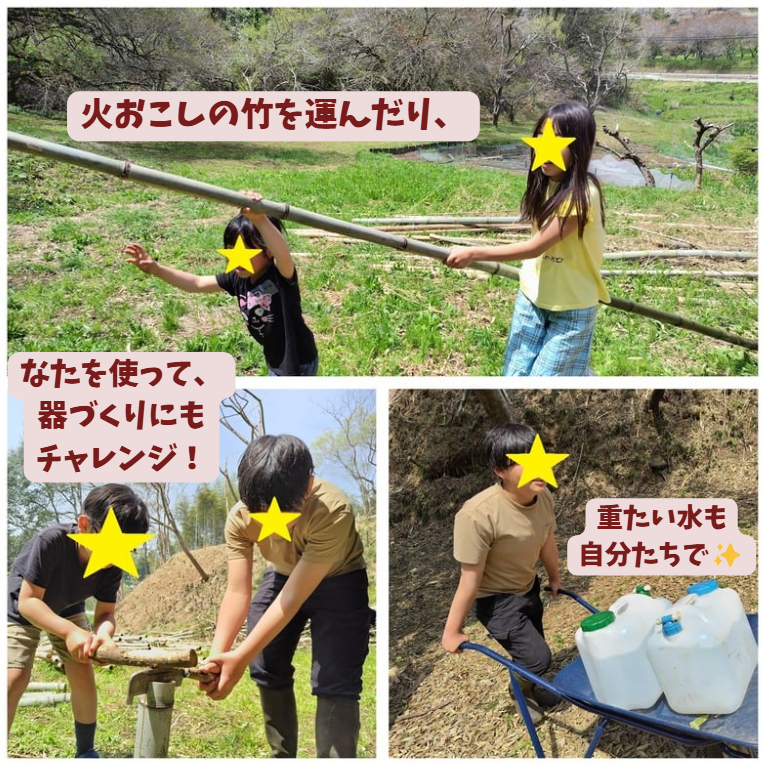 野外炊飯に抵抗があり、参加を迷ったりコンビニのおにぎりを持参していた子が、竹の器でしっかりご飯を食べてくれました( ;∀;)✨