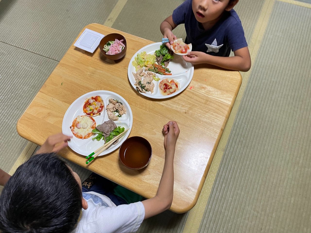 2024-04-18 15:111週間(1/22~26)の食事提供1月に入り、用意する食事の量が増えています! 利用し始めてすぐのころは、心配するほど食が細かった子が、今では何度もお代わりし、たくさん食べたことをとても嬉しそうに報告してくれます。ここまで、2年かかりました。 食べたことがないものが多い、自分の食べられる量が分からない、、、 食事の様子をじっくり観察し、声掛けを皆で行い、今では野菜もたくさん食べられるようになりました☆! 肌の状態がなかなか良くならない原因の一つに、必要な栄養素が不足していることも関係していたのではないかと思います。元気よく、たくさん体を使って遊ぶ、体力をつける、更に思い切り遊ぶことで、疲れて夜ぐっすり寝られる、そのためにもやはり子どもたちにとって食事はとても重要☆!ということを改めて気づかされます。2024-04-18 15:111週間(1/22~26)の食事提供1月に入り、用意する食事の量が増えています! 利用し始めてすぐのころは、心配するほど食が細かった子が、今では何度もお代わりし、たくさん食べたことをとても嬉しそうに報告してくれます。ここまで、2年かかりました。 食べたことがないものが多い、自分の食べられる量が分からない、、、 食事の様子をじっくり観察し、声掛けを皆で行い、今では野菜もたくさん食べられるようになりました☆! 肌の状態がなかなか良くならない原因の一つに、必要な栄養素が不足していることも関係していたのではないかと思います。元気よく、たくさん体を使って遊ぶ、体力をつける、更に思い切り遊ぶことで、疲れて夜ぐっすり寝られる、そのためにもやはり子どもたちにとって食事はとても重要☆!ということを改めて気づかされます。