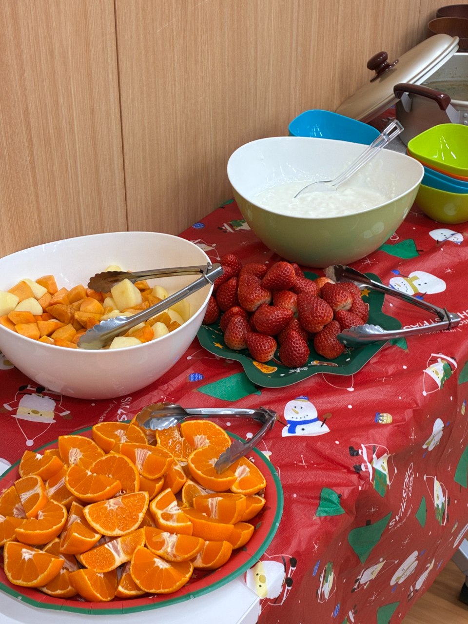 その他12月はたくさんの果物のご寄付があり、色彩豊かな食卓にこの日を楽しみにしてくれていた子どもたちも親御さんも目を輝かせて喜んでくれました🍚🥗🥘🍓🍊🍌