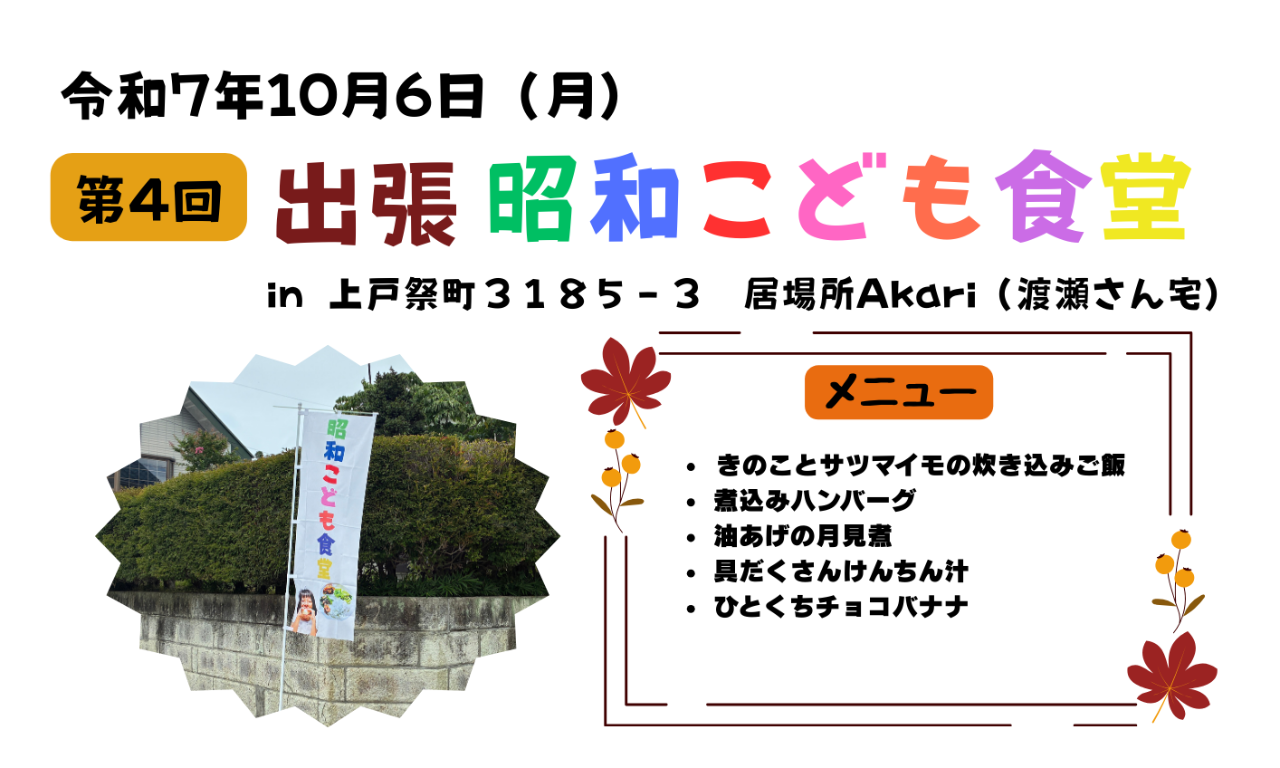 第4回は、7月にも実施した【居場所Akari】さんです🏡前回実施の際に配布したチラシで【出張こども食堂】のことを知ってくださったご近所の方が、是非お手伝いをしたいと申し出てくださり、この日はいつもの調理ボランティアさんと一緒にテキパキと調理をして下さいました👩🍳