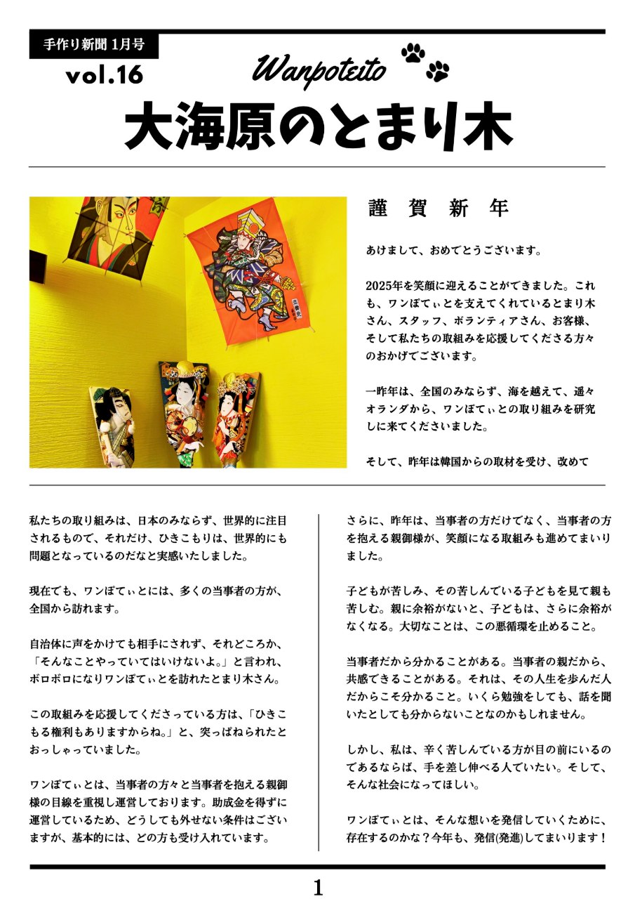 「とまり木新聞 2025年1月号(vol.16)を発行しました!