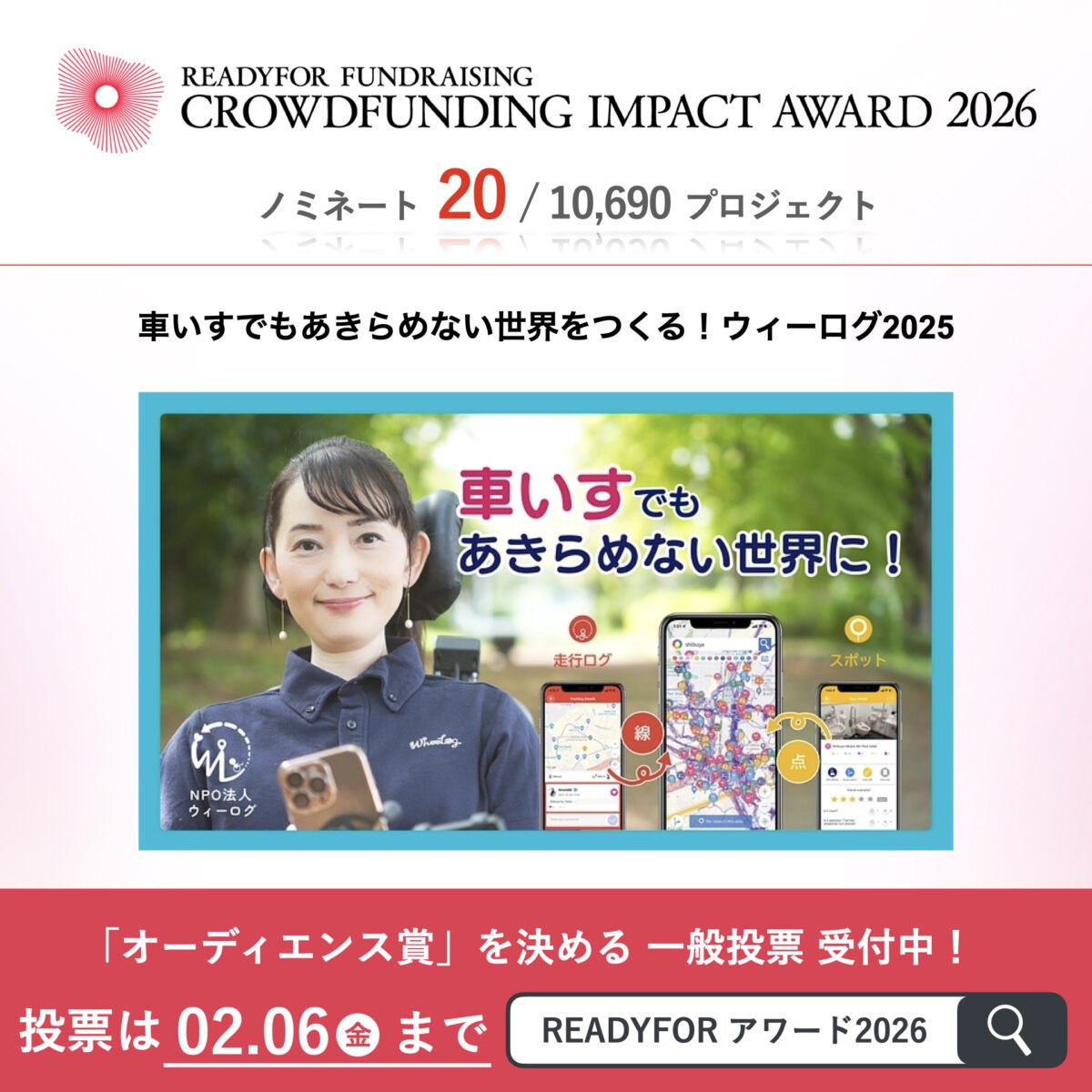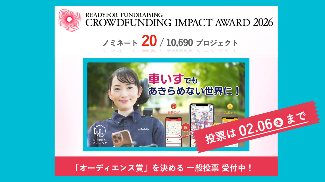 ウィーログのクラウドファンディングプロジェクトが、READYFOR主催「ファンドレイジング クラウドファンディングインパクトアワード2026」にノミネート(全20選)されました。