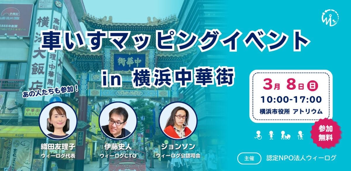 | 【イベント募集】 みんなでつくる!車いすマップ in 横浜中華街 (3/8開催) 実際に街を歩きながら、車いすでの移動情報を集める参加型イベントを開催します。初めての方も参加しやすい内容です。 詳細はこちら |