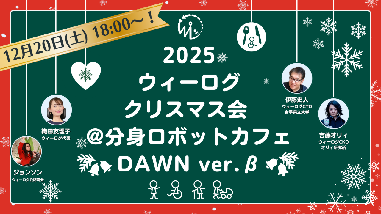 今年も恒例のウィーログクリスマス会を、東京・日本橋の分身ロボットカフェDAWN ver.βで開催します。
