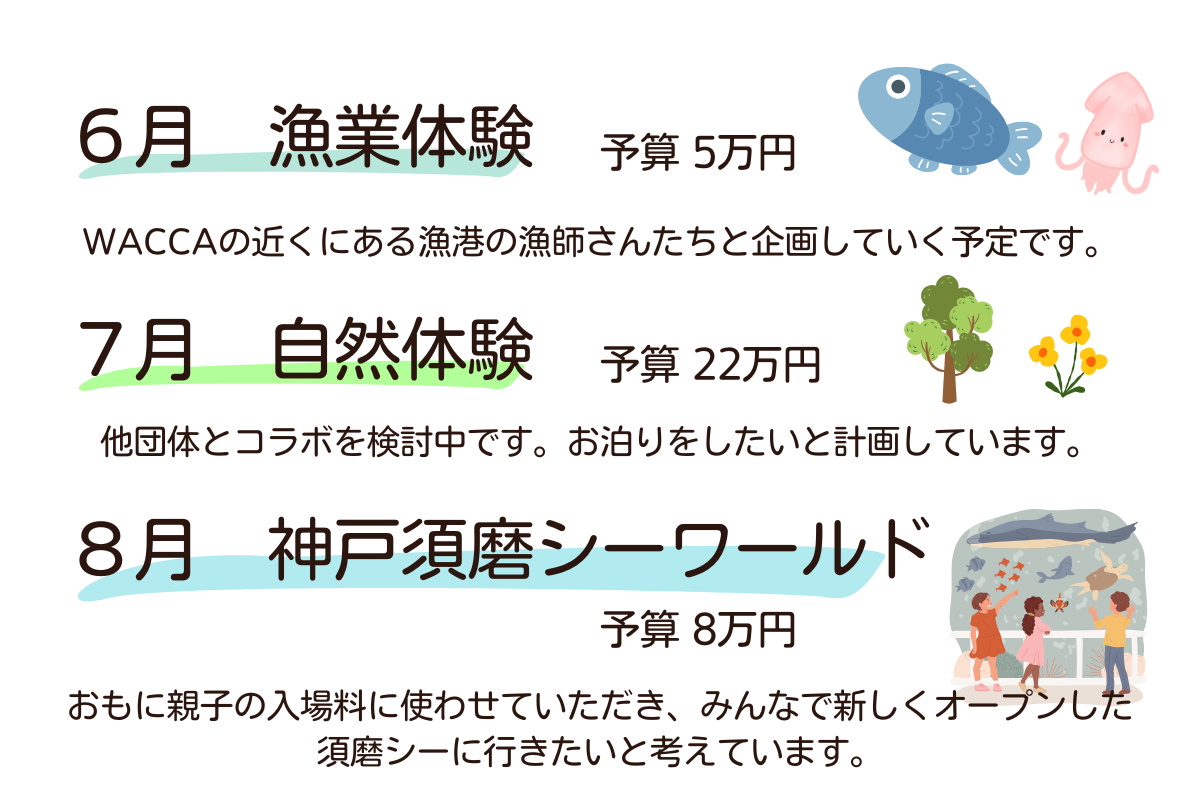 目標金額を活用し、2025年6月・7月・8月と三か月にわたり、月に一回あそび基地のイベントを開催します。