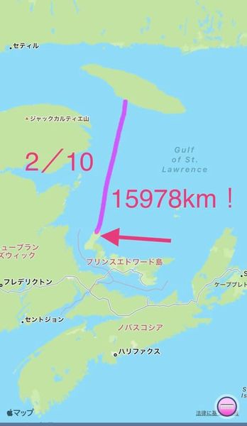 今はカナダのアンティコスティ島というところです。現在15731キロ。まだまだみなさんの協力が必要です!ぜひぜひ登録お願いします