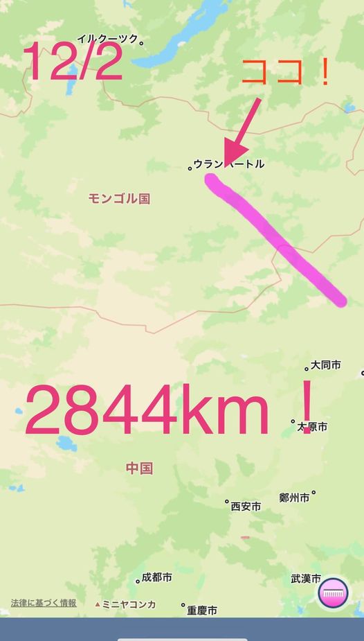 昨日は野外活動友の会12月例会でした。ピンクシャツデーバーチャルウォーキングが始まって最初の野外活動では、ピンクの服やピンクのマスクをしているこどもたちをたくさん見ました。今日までの距離は3,794キロモンゴルはとにかく広い!今日もまだモンゴルです。これが大陸の広さなんですね。みなさん明日も歩きましょう!