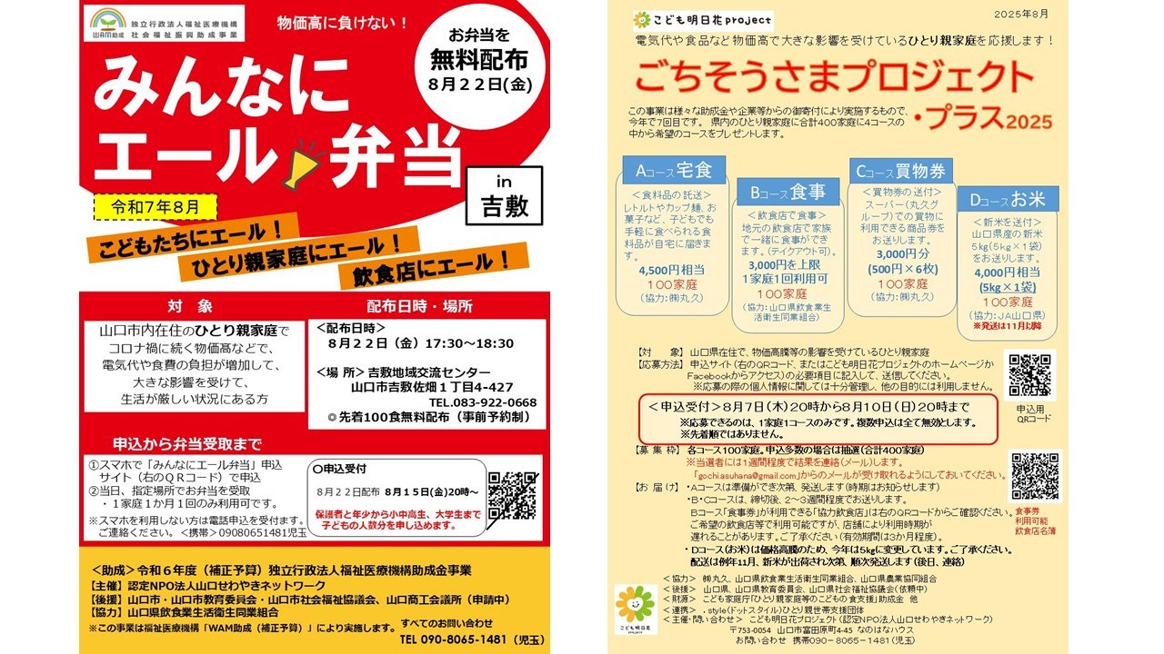 こども明日花プロジェクトは、コロナ禍が始まった2020年から、ひとり親家庭を応援するために「みんなにエール!弁当」無料配布、「ごちそうさまプロジェクト」などに取り組んでいます。
