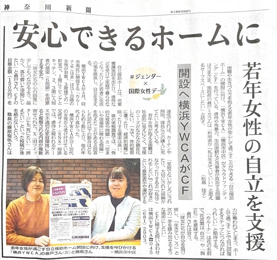 【2月13日掲載】神奈川県を中心に発行されている「タウンニュース」 【3月7日掲載】神奈川新聞に掲載 ぜひ、ご覧いただけると嬉しいです。 また、記事の掲載によって多くの方に活動を知っていただける機会となりました。 応援くださる皆様に感謝申し上げます。