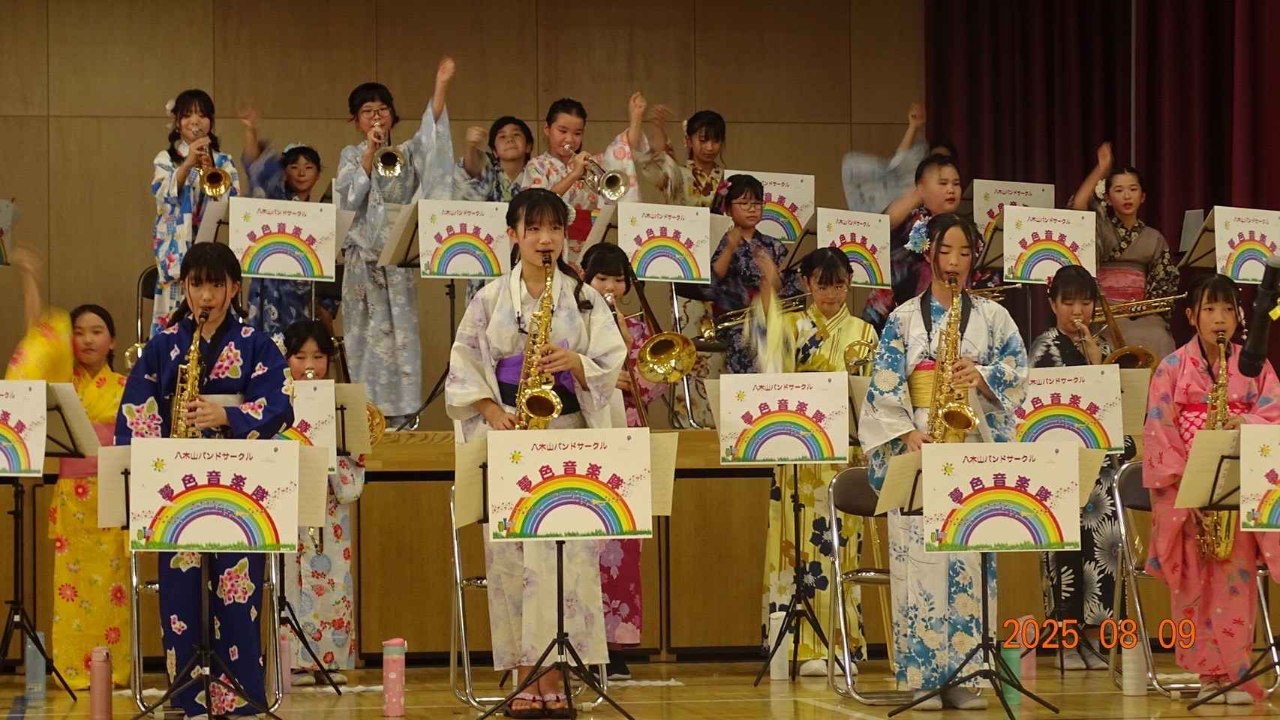 2025-08-10 21:05八木山夏祭り盆踊り大会に出演しました!8月9日、八木山夏祭り盆踊り大会に夢色音楽隊が出演し、37名のメンバーで元気いっぱいの演奏をお届けしました。 この日は暑さもありましたが、メンバー全員が浴衣姿で参加し、地域の皆さんと一緒に夏のひとときを楽しむことができました。 会場からはたくさんの拍手や「がんばれ!」の声をいただき、子どもたちにとって大きな励みとなりました。 こうして地域の皆さんと直接ふれあえる機会を持てることが、私たちの活動の原動力になっています。 引き続き、皆さまの温かいご支援を力に、より良い音楽をお届けできるよう練習を重ねてまいります。2025-08-10 21:05八木山夏祭り盆踊り大会に出演しました!8月9日、八木山夏祭り盆踊り大会に夢色音楽隊が出演し、37名のメンバーで元気いっぱいの演奏をお届けしました。 この日は暑さもありましたが、メンバー全員が浴衣姿で参加し、地域の皆さんと一緒に夏のひとときを楽しむことができました。 会場からはたくさんの拍手や「がんばれ!」の声をいただき、子どもたちにとって大きな励みとなりました。 こうして地域の皆さんと直接ふれあえる機会を持てることが、私たちの活動の原動力になっています。 引き続き、皆さまの温かいご支援を力に、より良い音楽をお届けできるよう練習を重ねてまいります。