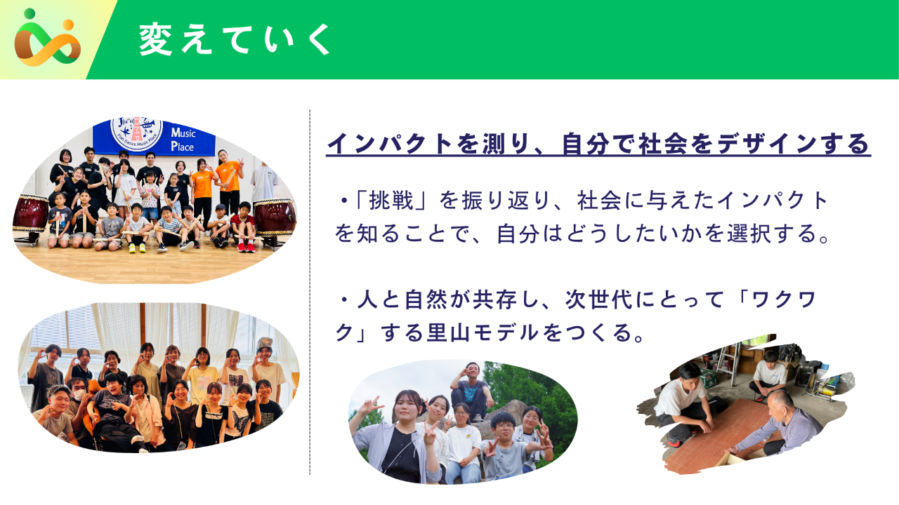 また、将来的には自然循環や人と人との循環以外にも、資源循環や人生の循環など夢前町を舞台に様々な循環を生み出し、それぞれの循環が噛み合うことで地域が活性化して世代を超えたつながりがどんどん生まれていく。