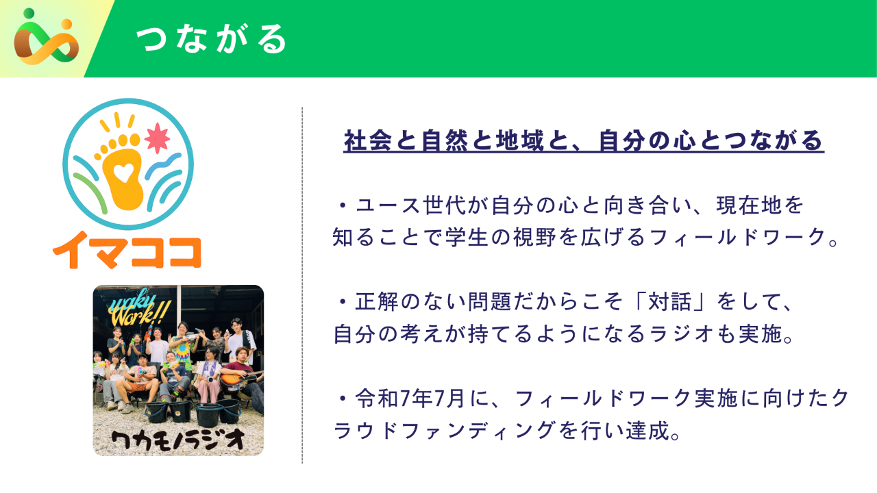 また、高校生〜大学生向けに提供している沖縄フィールドワーク「イマココ」は、社会課題を「知識」ではなく「自分ごと」として体感することを目的とした、体験型・対話型の学びのプログラムです。