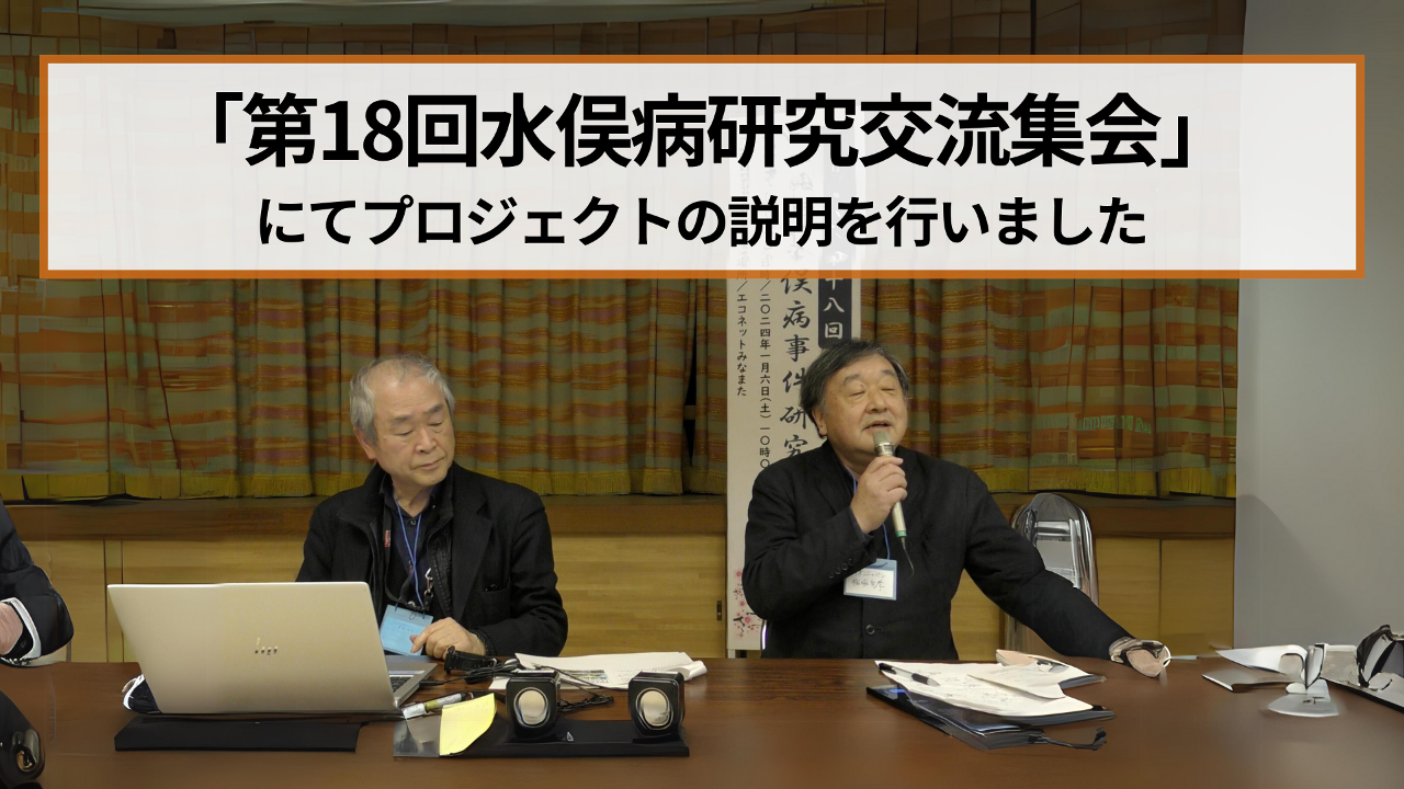 2024年1月6日(土)に熊本県の社会福祉法人エコネットみなまたのホールにて行われた「第18回水俣病研究交流集会」にて本プロジェクトの説明会を行いました。